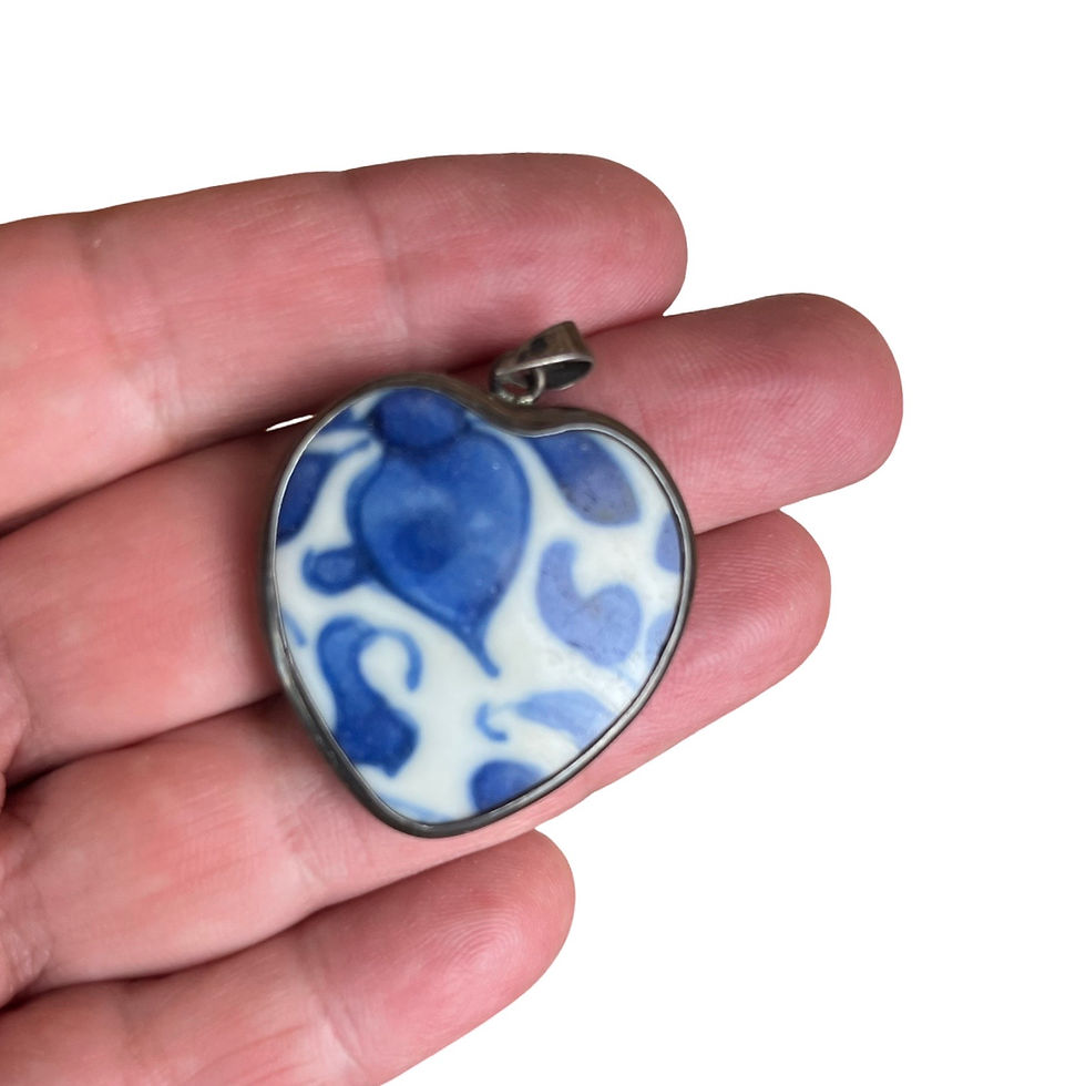 Vintage Unmarked Silver Chinese Pottery Shard Heart Pendant, 1930s