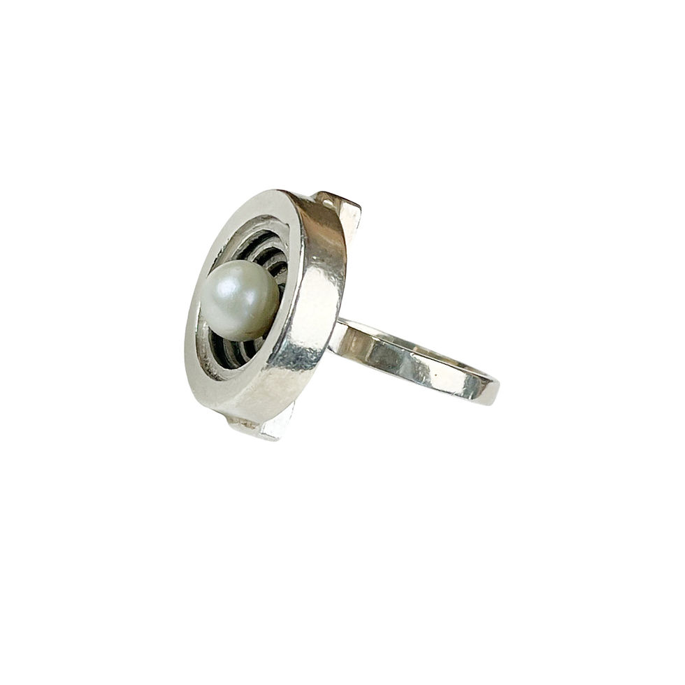 Vintage Midcentury Macchiarini Sculptured Pearl in Mixed Metal Ring, Size 5.25